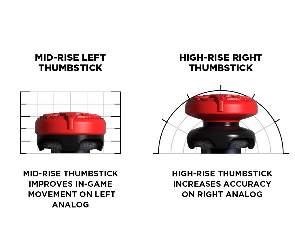 -Mixed-rise thumbsticks for upgraded aiming and control