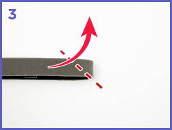 2. Dobla la tira al lado del logo para que el adhesive mire para fuera.