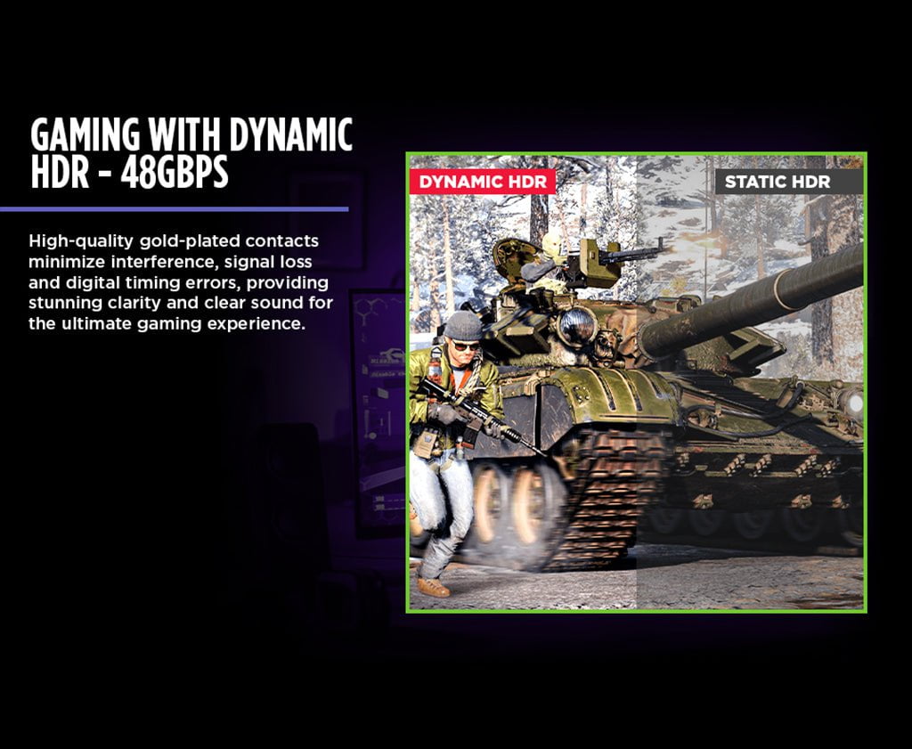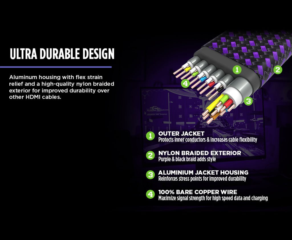 KontrolFreek’s 12FT/3.6M HDMI 8K Ultra Gaming Cable™ is a high-speed HDMI 2.1 compliant cable. It supports up to 48Gbps bandwidth capable of uncompressed 8K video with HDR compliance for insane graphical outputs that will keep your gaming sharp and clear. High-quality gold-plated contacts minimize interference, signal loss and digital timing errors, providing stunning clarity and clear sound. This cable was built to last, with a flex strain relief design and an exterior nylon braid. The flat construction provides flexible installation options and the included velcro tie offers additional cable management options. This cable is backwards compatible with earlier versions of HDMI and can be used with existing HDMI devices and is compatible with PlayStation and Xbox devices. As an added bonus, it’s backed by KontrolFreek's Lifetime Limited Warranty. Our warranty covers any defects in materials or workmanship under normal use conditions, for as long as you own the cable.