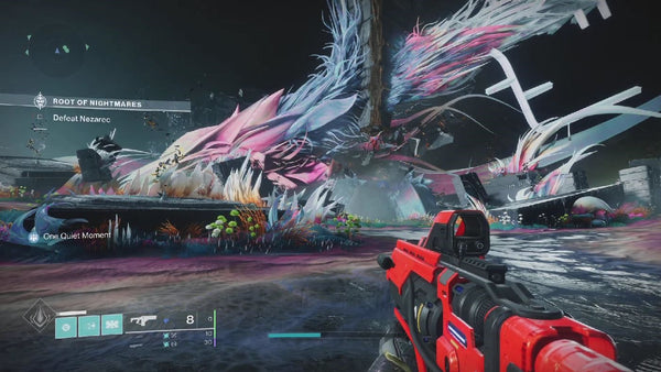 Ad clearers in the middle, when you damage Nezarec enough, he will emit an explosion of either light or dark. Make note of this color and call it out to your runners. Halfway through their run the opposite color runner will activate a node on the color you called out, which will activate a refuge zone, similar to the one in the jumping section of encounter 2.5. For example, boss handlers damage Nezarec’s shoulder enough that he gives off a burst of orange darkness, which they call out to the runners. Since the safe side is dark, the light side runner will need to shoot any already active dark side node to create the refuge zone. All players need to enter the refuge zone to acquire the buff, but once Nezarec starts performing the wipe mechanic, everyone can leave and get back to their respective positions. Once the second set of chains have been completed by the runners, another beam of darkness will hit Nezarec and he can be damaged again. Group up on your plate with well of radiance and any supers you have. If you get his health down to the final bar, he will do a short animation, and then be damageable again in his final stand. Burn down his last shred of health and claim victory over the Final God of Pain and your loot for completing the Root of Nightmares raid! If you complete the requirements for the extra red border chest, you’ll receive that, and you can also purchase one red border a week if you approach the relic at the top of the stairs. Congratulations on beating the raid guardian!