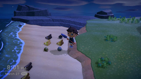 As you go, you can collect and move all of the island’s cleared resources to the beach. Simply pick up everything and drop it out of the way. While you can leave things in place, having items left everywhere make it difficult to see the insects you are hunting. Fortunately, Animal Crossing: New Horizons allows you to place things on the ground just about anywhere.