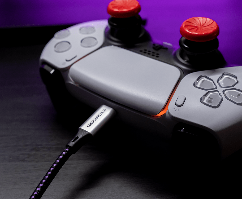 Our 12FT/3.6M USB Type-A to Type-C Gaming Cable™ was specifically designed to help gamers stay in charge of their Type-C compatible devices like PlayStation 5, Xbox Series X|S and Nintendo Switch. It supports USB 2.0 data transfer speeds up to 480Mbps and 2A charging. The stylish exterior features a durable black and purple nylon braid and a round construction to prevent tangling. The flex strain relief design reinforces stress points to increase the cable lifespan. It is compatible with all USB A-C devices. As an added bonus, it’s backed by KontrolFreek's Lifetime Limited Warranty. Our warranty covers any defects in materials or workmanship under normal use conditions, for as long as you own the cable.